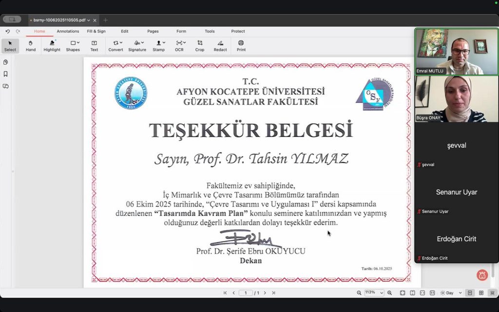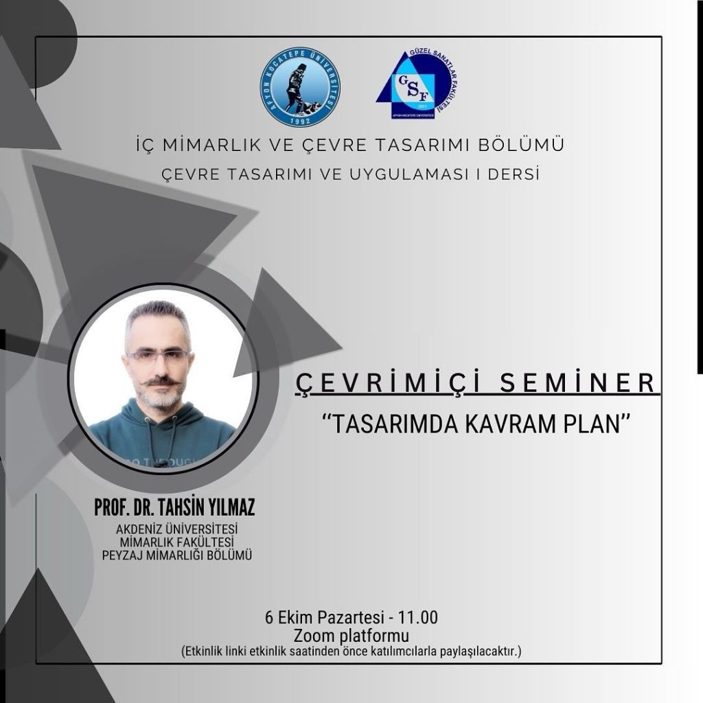 6 Ekim tarihinde, İç Mimarlık ve Çevre Tasarımı Bölümümüz bünyesinde Dr. Öğr. Üyesi Büşra Onay yürütücülüğünde verilen Çevre Tasarımı ve Uygulaması I dersi kapsamında öğrencilerimize yönelik çevrim içi bir seminer gerçekleştirildi.