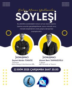 Bu etkinlikte sürdürülebilir mimari ve fuar standı tasarımı üzerine sunumlar gerçekleştirilecek; ayrıca mimarlık ve iç mimarlık disiplinlerinin ortak çalışma deneyimleri paylaşılacaktır.