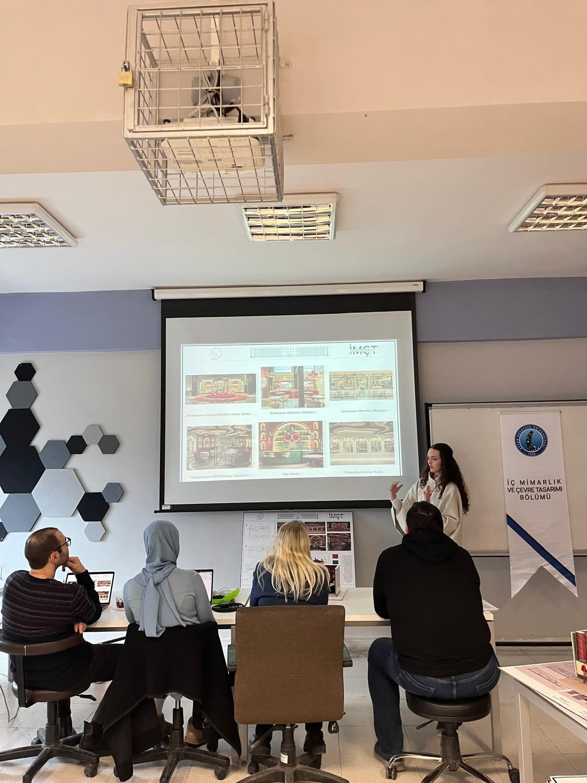 İç Mimarlık ve Çevre Tasarımı Bölümü öğrencilerimiz, İç Mimari Proje V dersi kapsamında yürüttükleri Konsept Restoran Tasarımı projelerini 12 Ocak 2026 tarihinde final jürisinde başarıyla sundu.