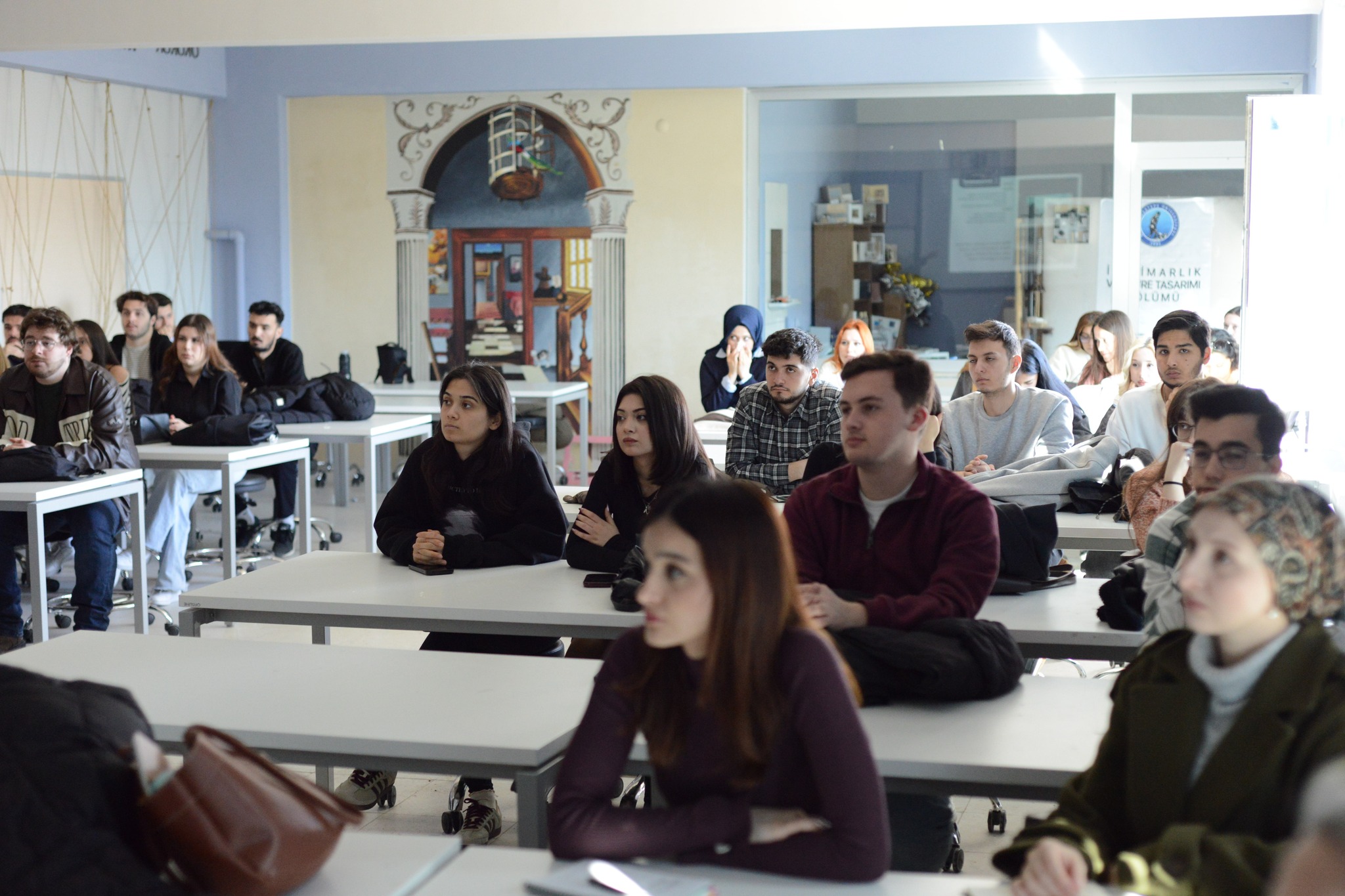 Dekan Yardımcımız Dr. Öğr. Üyesi Fevzi Nuri Kara, İç Mimarlık ve Çevre Tasarımı Bölümümüzde yürütülen “İç Mimari Proje IV” dersi kapsamında, 2-3 Mart 2026 tarihlerinde, üçüncü sınıf öğrencilerine yönelik “Sanat Galerisi” konulu bilgilendirme sunumu gerçekleştirdi.
